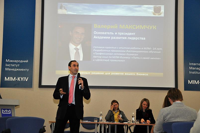 «Різновиди маркетингових планів компаній прямого продажу, їх переваги та недоліки», «Формування дистриб'юторської мережі» (Валерій Максимчук, засновник і президент Академії розвитку лідерства),